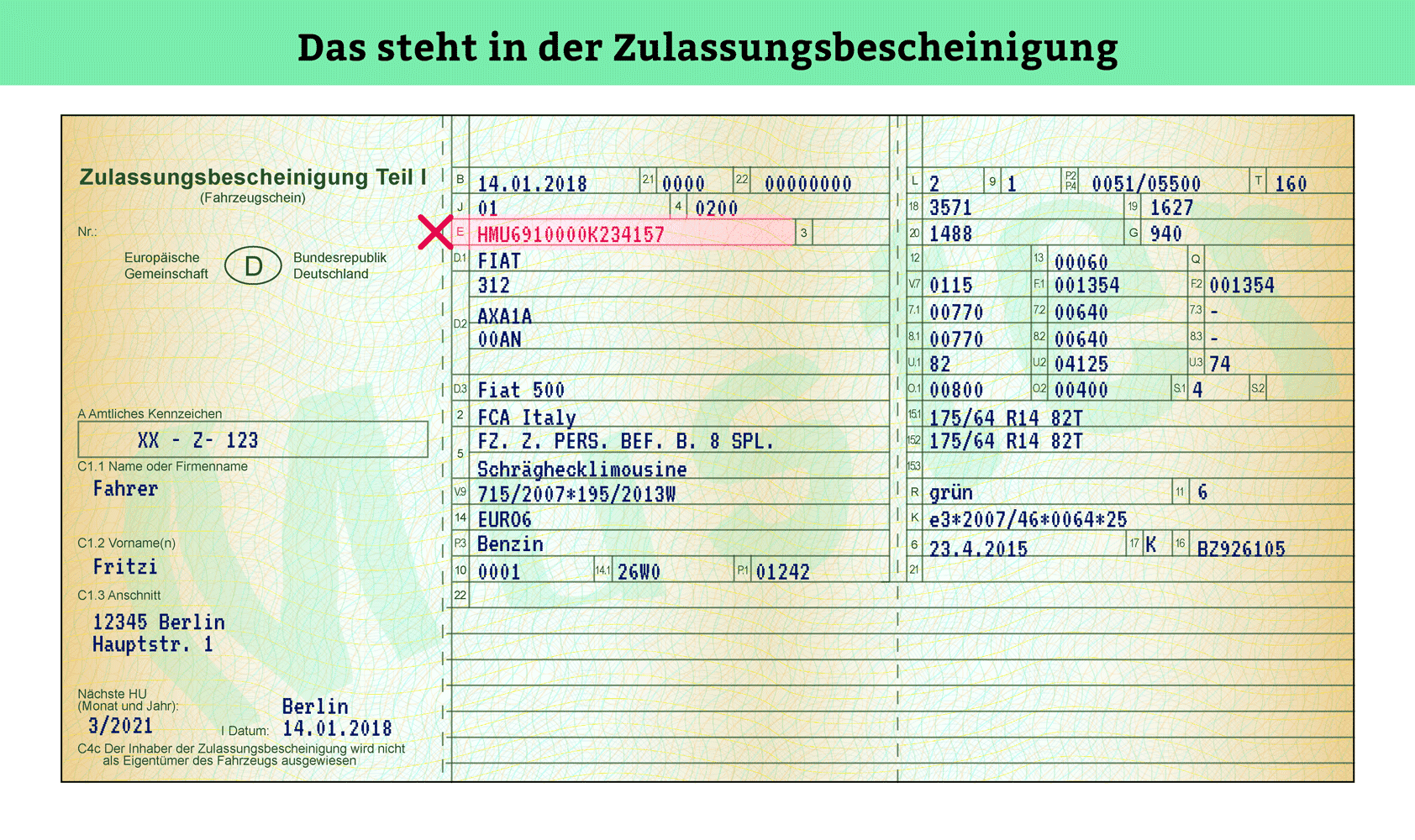 Welcher Name steht im Fahrzeugschein?